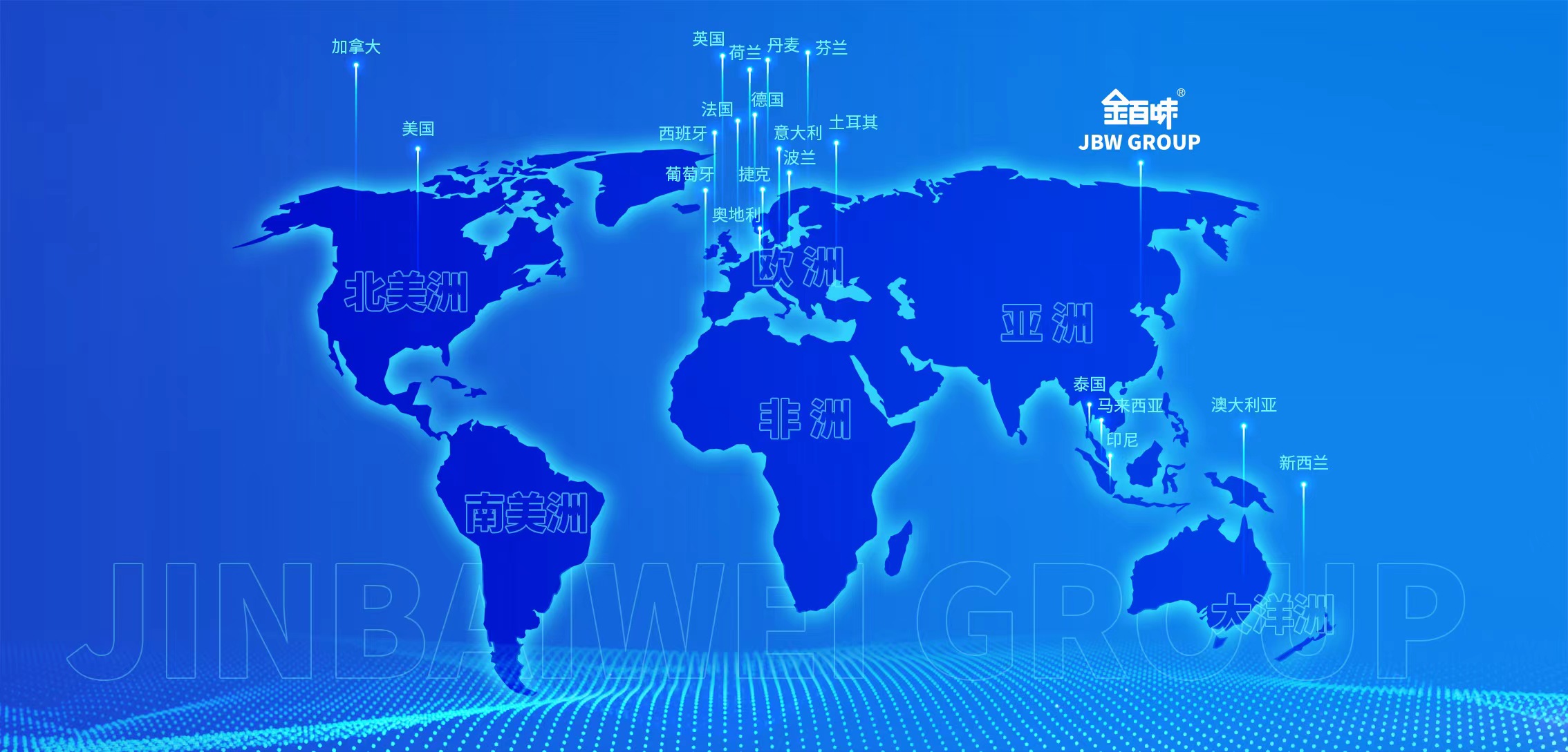 金百味集团经过二十余年不断地完善、升级、蜕变,以其全球化战略布局及独特的品牌文化魅力,使产品销售网络覆盖全国,并远销至欧、美、亚、非、大洋洲等国家和地区,与世界诸多百强商业巨头建立并形成稳定的商业合作模式,为世界亿万家庭带来美味健康的好产品。